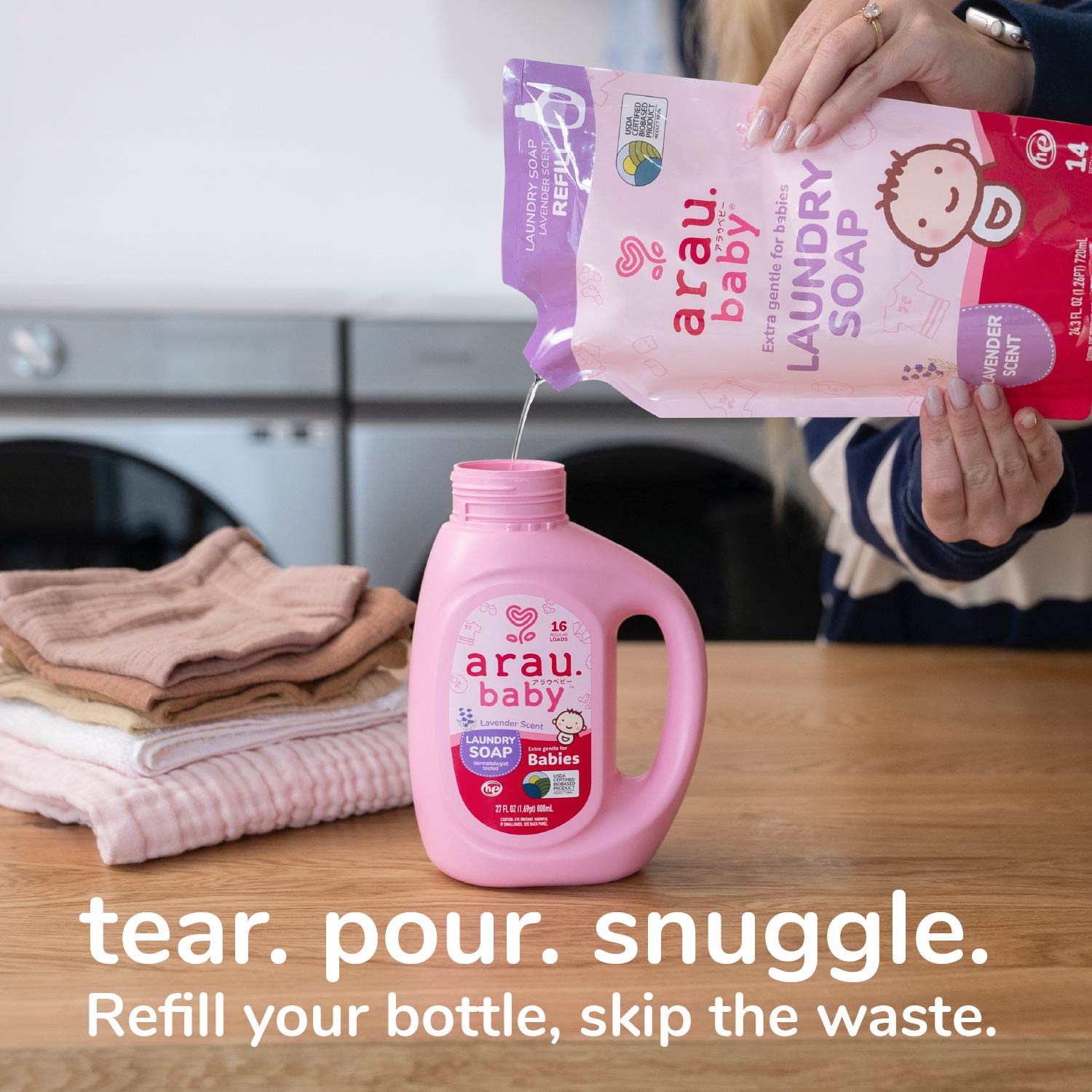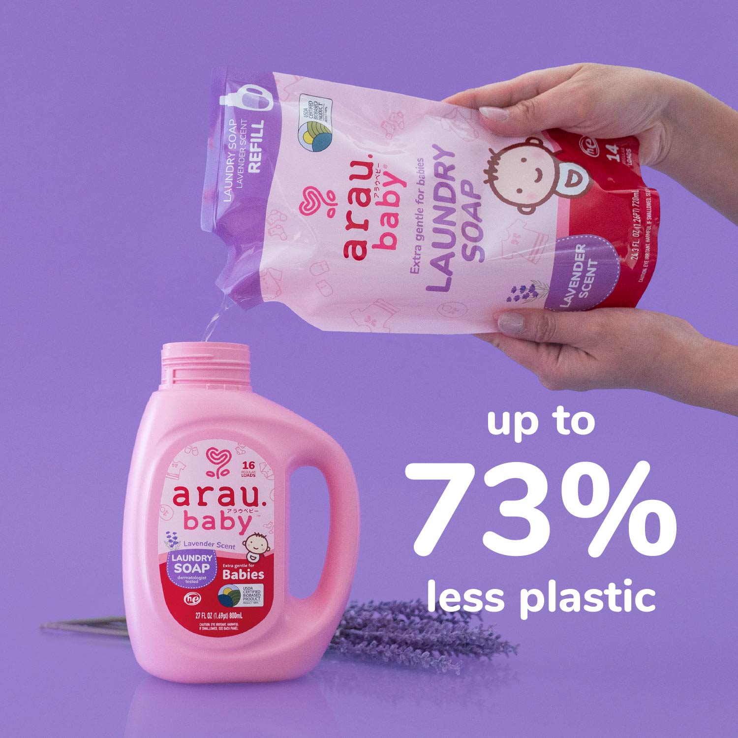 Our Lavender Laundry Soap Refill gives you the same plant-based, gentle clean you trust — now in a soothing lavender scent and with up to 73% less plastic. It’s gentle on baby skin, tough on messes, and a simple switch that’s kinder to the planet. Just pour, snuggle, repeat.